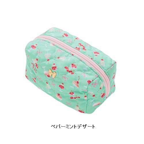 撥水加工のタフタ素材に雲の模様のキルティングを施した、とびきりガーリーなポーチ。
