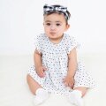 カットドビーが清楚な雰囲気のロンパースです。