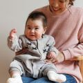 キラキラのラメ糸を引き揃えたニットのように見えて、厳密にはニットではないのでニットほど伸びてしまったり、ひっかけて糸が飛び出してきたり、がないカバーオール。