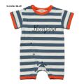 フランス語のあいさつがプリントされたボーダー天竺のリンガーロンパース。