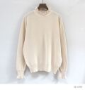 首元と袖口のフリルが程よい甘さの絶妙なバランスのハイネックデザイン。