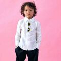 胸元の配色がかわいい丸い切り替えが魅力的なキッズ用シャツ。